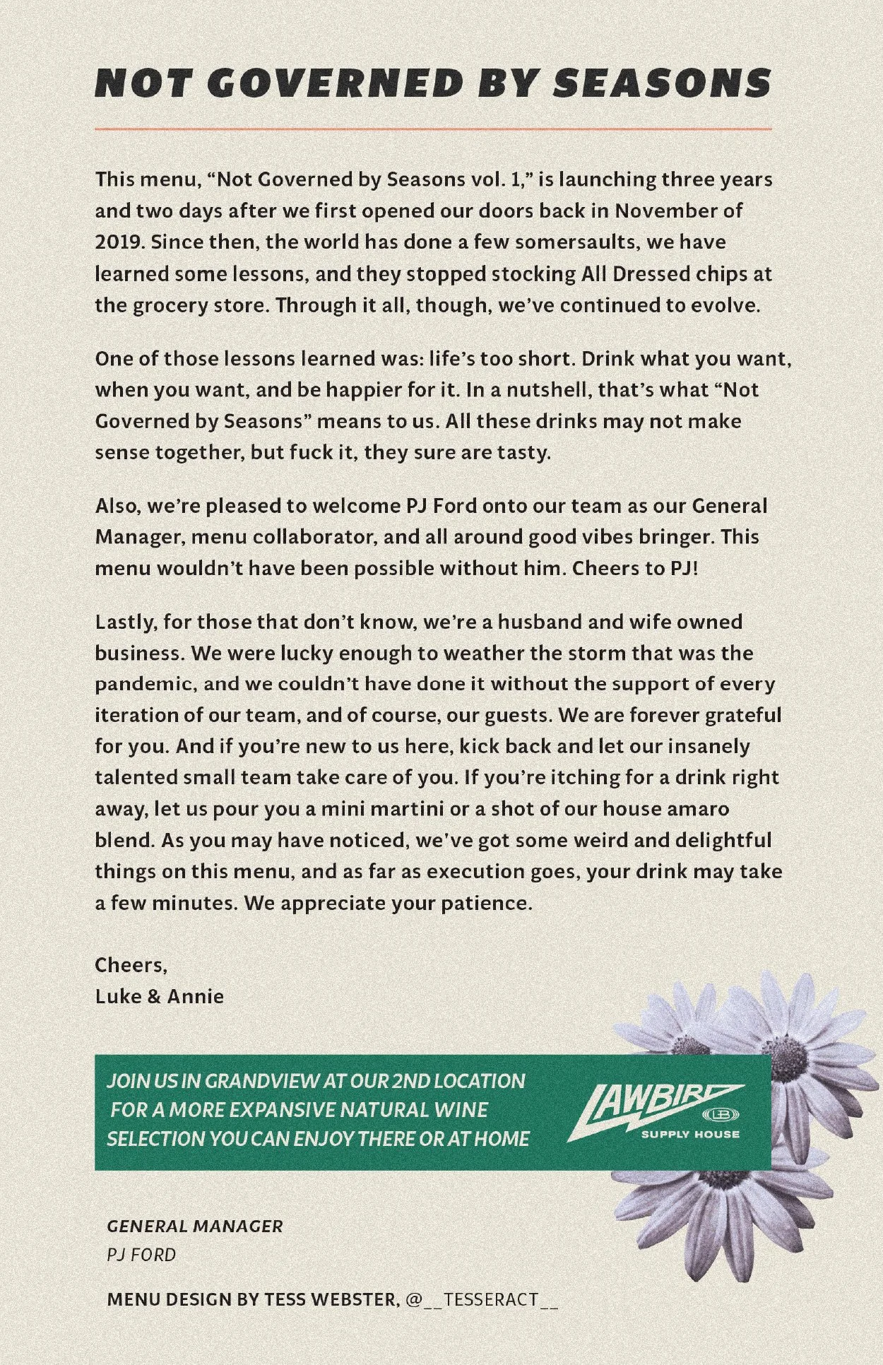 LAW BIRD MENU ARCHIVE